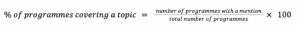 - A programme was counted as covering a topic if at least one relevant keyword appeared in the transcript; repeated mentions within the same programme did not increase the count.